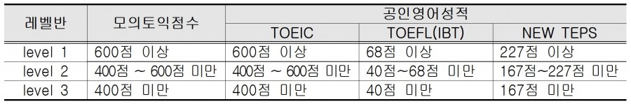 1. 공인영어성적 제출 레벨반 편성 희망자