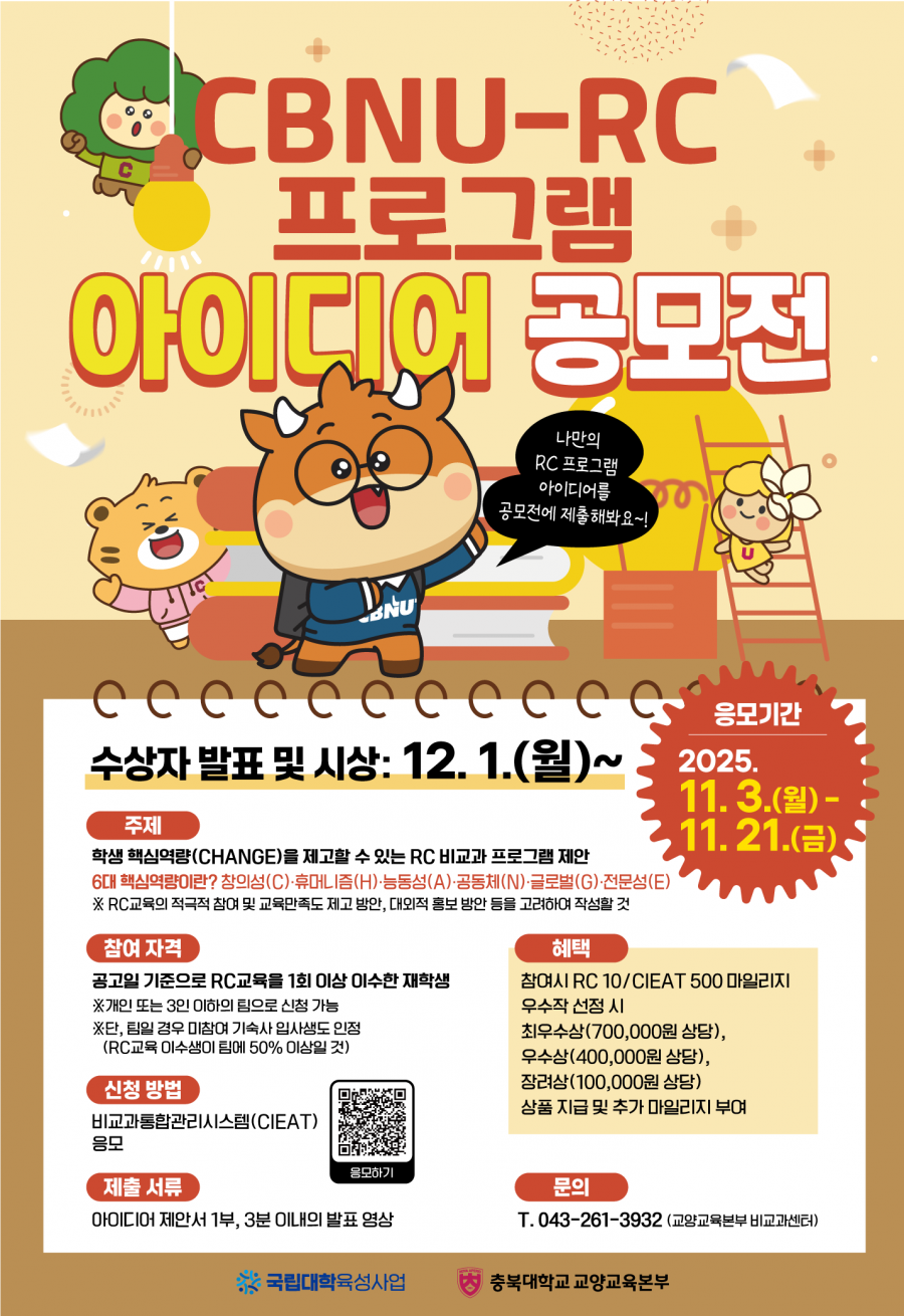 문의 : 교양교육본부 비교과센터 RC (☎043-261-3932)